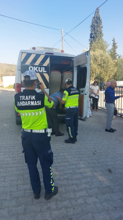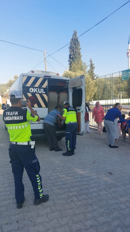 2025-2026 Eğitim Öğretim yılı açılış gününde, Milas Trafik Jandarma Ekipleri, okulumuz taşımalı eğitim kapsamında hizmet veren servis araçlarının denetimini gerçekleştirdi. Öğrencilerimize güvenli bir yolculuk için emniyet kemeri takmalarının önemini anlatan ekipler, servis araçlarının ekipmanlarını kontrol etti.